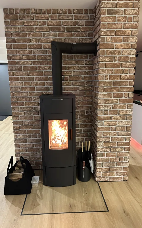 Kaminverkleidung neben Ofen