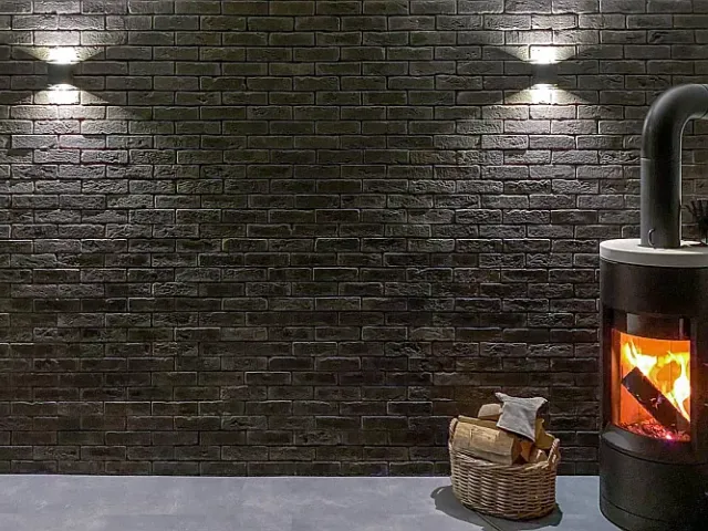 Innenwand verkleidet mit dem Klinkerriemchen Urban graphit