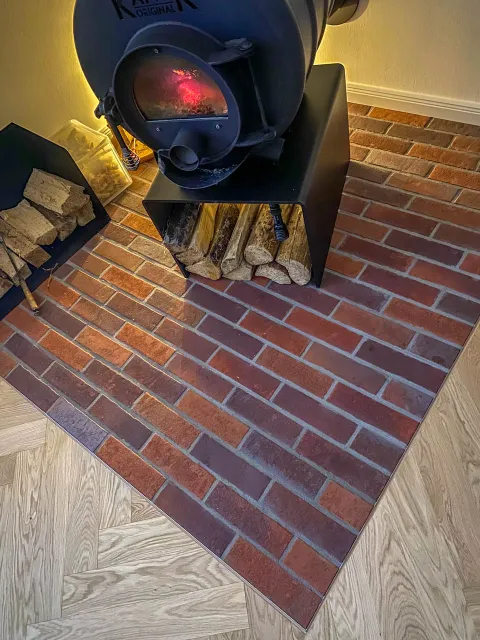 Rotes glattes Klinkerriemchen mit schwarzer/kupferner Flammung nur 15mm stark. Endlich können wir Ihnen auch diese Oberflächen zu einem spitzen Preis anbieten. Bei dieser Sorte handelt es sich nämlich um einen wasserstrich Stein. Der Unterschied zu den meisten Sorten ist, dass dieser Ziegelstein keine Narbung aufweist und sehr glatt an der Oberfläche ist. Beim Formen dieser Ziegelsteine wird als Trennmittel Wasser eingesetzt, wodurch die schöne Oberfläche entsteht. Das Klinkerriemchen ist neben der glatten Oberfläche trotzdem den Handformsteinen zuzuordnen. Es ist aus einem roten Ton gebrannt und die Oberfläche ist teilweise mit einer schwarzen und kupferfarbenen Flammung versehen. Ein wundervoller Stein der Außen genauso wie für Innen geeignet ist. Inspiration 1m² = 56 Riemchen mit 12-15 mm Fuge Riemchen, die aus echten Steinen, Klinkern, Backsteinen oder Ziegeln geschnitten sind Diese Sorte ist auch als Winkelriemchen New York Flamme verfügbar. Alle andern Winkelriemchen findest du hier. Projekte - Die Riemchen sind für Innen und Außen geeignet Schattenfuge - Es ist kein nachträgliches Verfugen nötig Vollfuge - Es kann nachträglich verfugt werden Sehr dünne Riemchen - geringes Gewicht nur 25 kg/m² In unserem Riemchen-Ratgeber findest Du ausführliche Informationen zur Herstellung von Klinker- und Backsteinriemchen und alle Aspekte und Hinweise zu einer optimalen Verarbeitung. Unsere Klinkerriemchen sind hochwertige Produkte. Sie werden aus neuwertigen und echten Klinkersteinen geschnitten. Jedes Riemchen ist ein Unikat, das in unserer eigenen Produktion hergestellt wird. So erreichen wir ein unschlagbares Preis-/Leistungsverhältnis, wovon Du profitierst. Eine ausführliche Anleitung zu unserem Bestellablauf und Infos über Liefer- und Versandkosten sind hier einzusehen. Gerne erstellen wir Dir individuelle Angebote und unterstützen Dich bei jeglichen Fragen und dem perfekten Aufmaß. Kontaktiere uns dazu einfach über unser Kontaktformular oder nutze den Angebotsbutton im Warenkorb.
