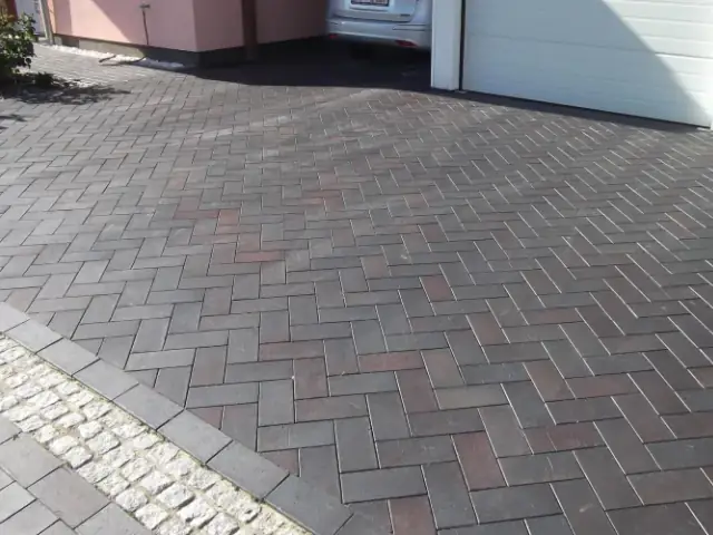 Eine Hofeinfahrt mit dunklem Pflasterklinker der Sorte Dresden. Zeitlos stilvoll, immer modern und beständig. Eine gute Wahl.
