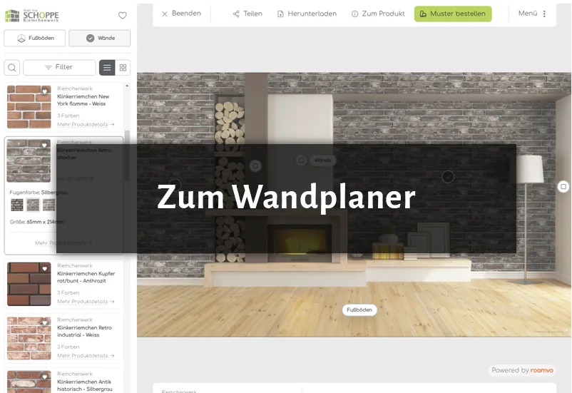 Übrigens kannst du über unseren Wand-und Bodenplaner deine Böden bequem von zu Hause spielend leicht visualisieren. Schau dir einfach digital an, wie unsere Klinker und Klinkerriemchen in deiner Umgebng wirken.