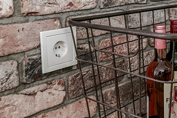 Weiterhin kann es sein, dass sich Steckdosen, Lichtschalter oder andere Elemente auf der Wand befinden. Hierbei habt Ihr zwei Möglichkeiten: Zum einen können die Elemente abmontieren und nach dem Verlegen auf die Riemchen draufgesetzt werden. Alternativ können die Riemchen an den entsprechenden Stellen eingemessen und zugeschnitten werden. So sind die Elemente harmonisch in die Wand eingebracht und tragen nicht zusätzlich auf.
